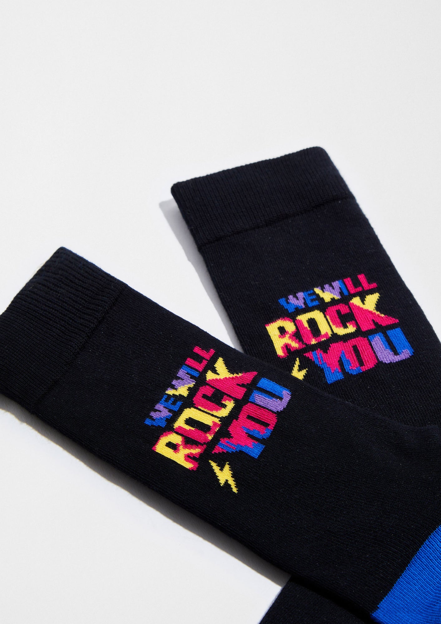 Calcetín negro de Queen con dibujo de We Will Rock You