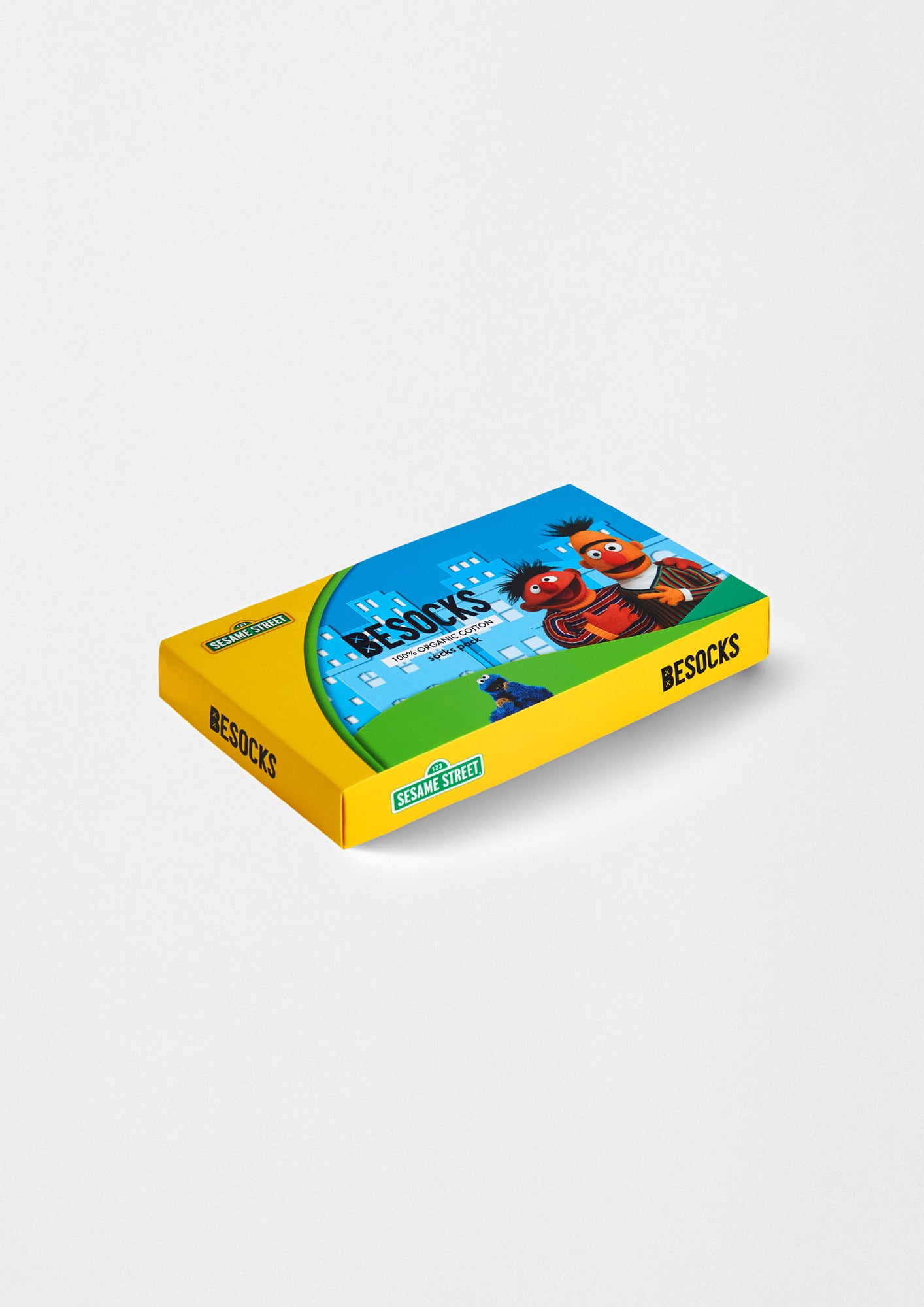 The Sesame Street Pack includes three memorable pairs of socks: BeCookieMonster, BeEpi, and BeBlas, with unique designs inspired by the iconic Sesame Street characters. Presented in an original themed box, this pack is perfect for fans of all ages or to surprise someone with a gift full of nostalgia and style.