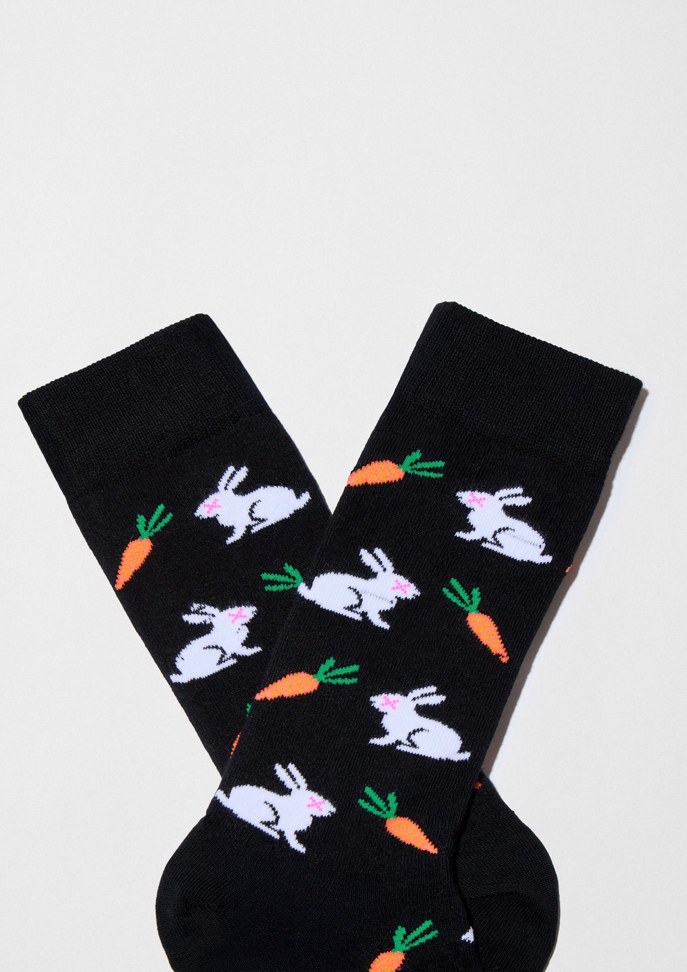 Calcetín negro con dibujos de conejos y zanahorias