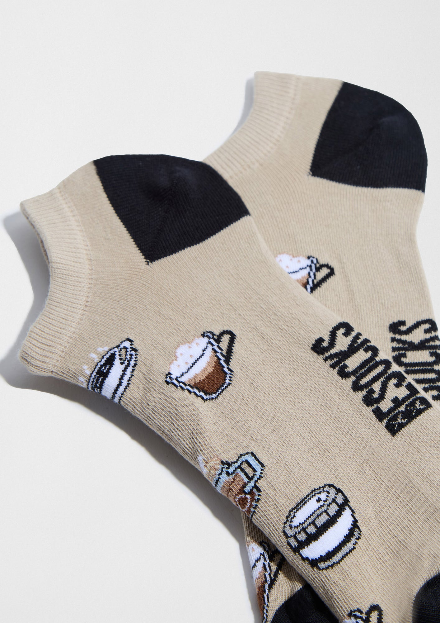 Calcetín tobillero beige con motivos de café