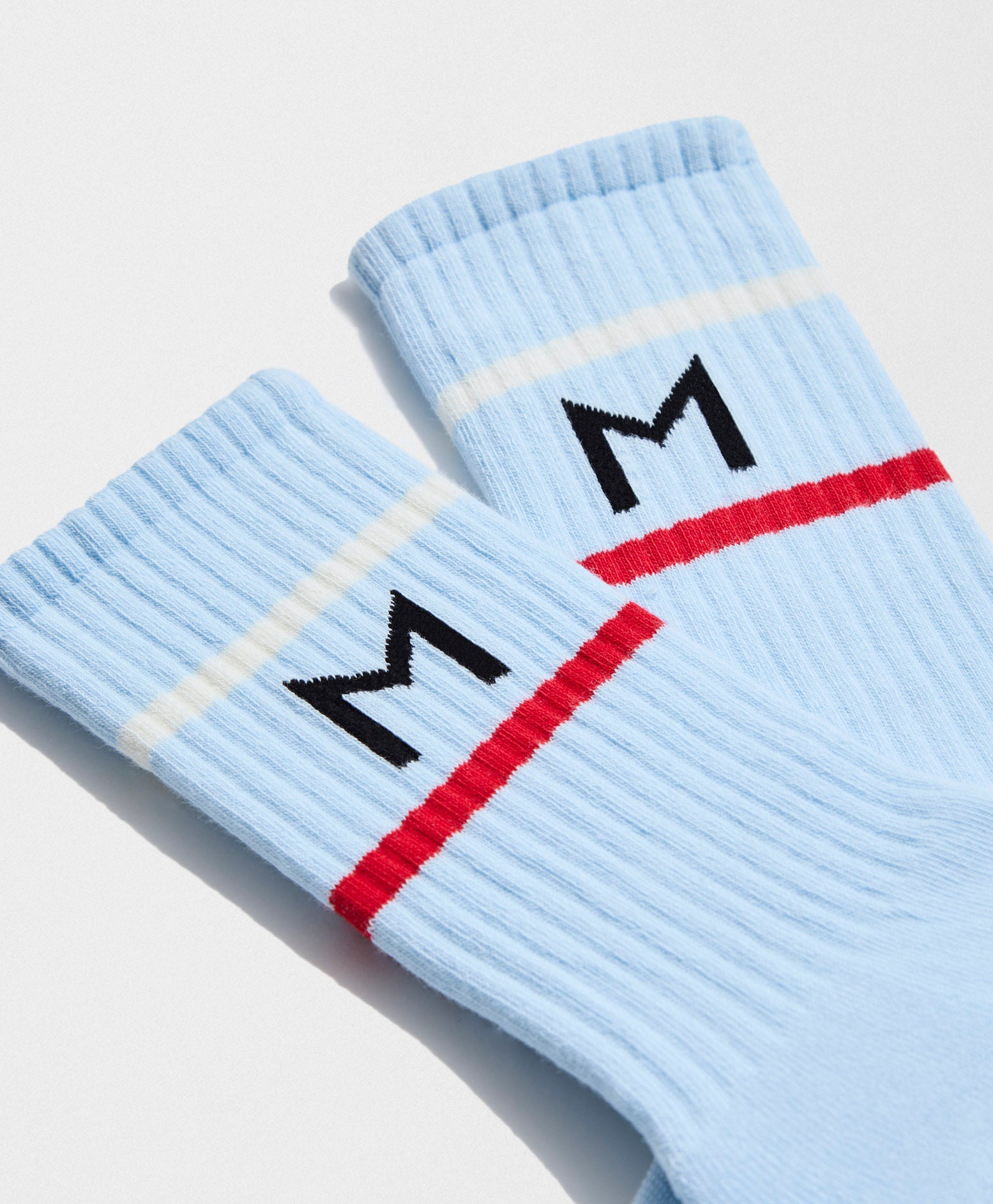 Los calcetines BeMOISESNIETO Light Blue combinan un azul celeste equilibrado con franjas sport inspiradas en los 70´s. Fabricados con algodón orgánico, ofrecen suavidad y comodidad durante todo el día. El logo tejido “M” aporta identidad y elegancia discreta. Un esencial minimalista y versátil para elevar cualquier look con un gesto sencillo y contemporáneo.
