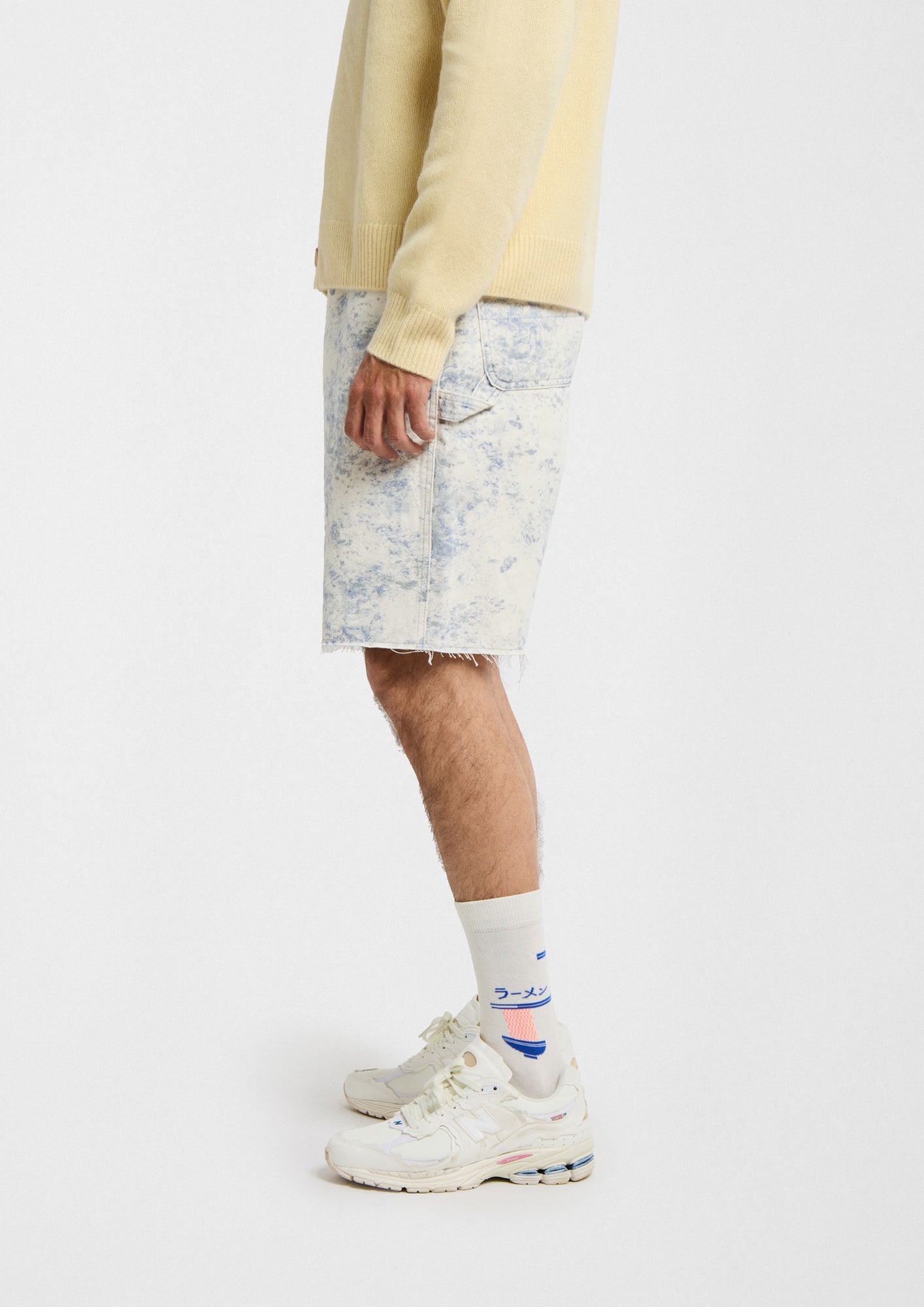 Los calcetines BeRamen presentan una base de color off white con un dibujo lateral de un cuenco de ramen con tono naranja flúor y azul klein. El diseño se concentra en un único punto del calcetín. El talón, la puntera y el puño mantienen el mismo tono del fondo. Un modelo adecuado para looks casuales e informales, fácil de integrar en tus outfits de uso diario.