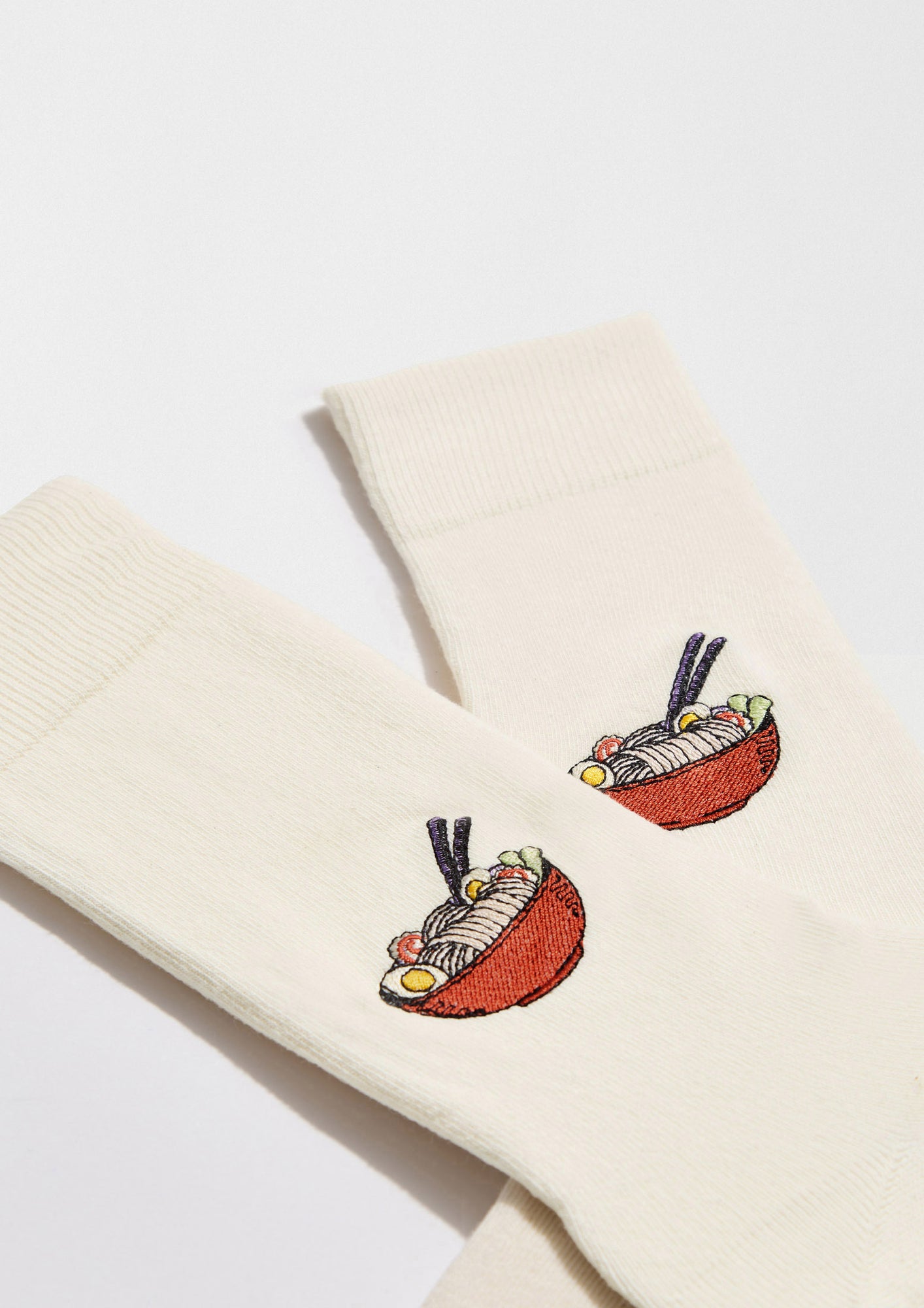 Calcetín beige con dibujo bordado de ramen