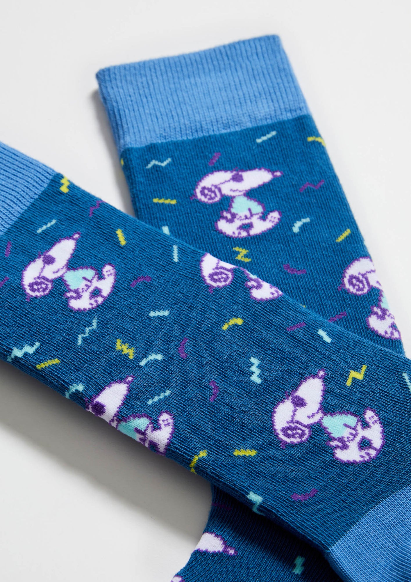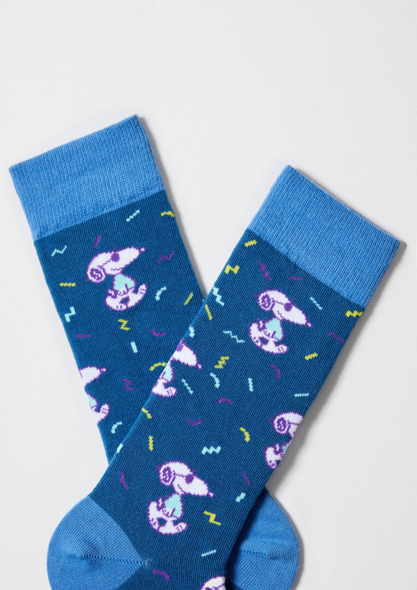 Los calcetines BeSnoopy Fun en azul son ese diseño atemporal con un toque moderno que se adapta a todos los dress code. Su diseño con dibujos de Snoopy en el espacio los hace muy versátiles y son ideales para ampliar tu fondo de armario. Puedes combinarlos con tus sneakers retro favoritas o con zapatos.